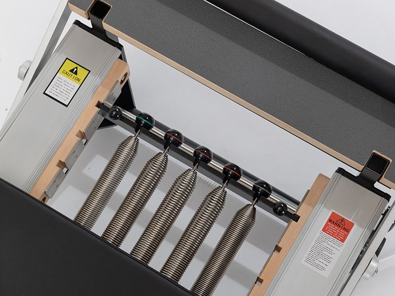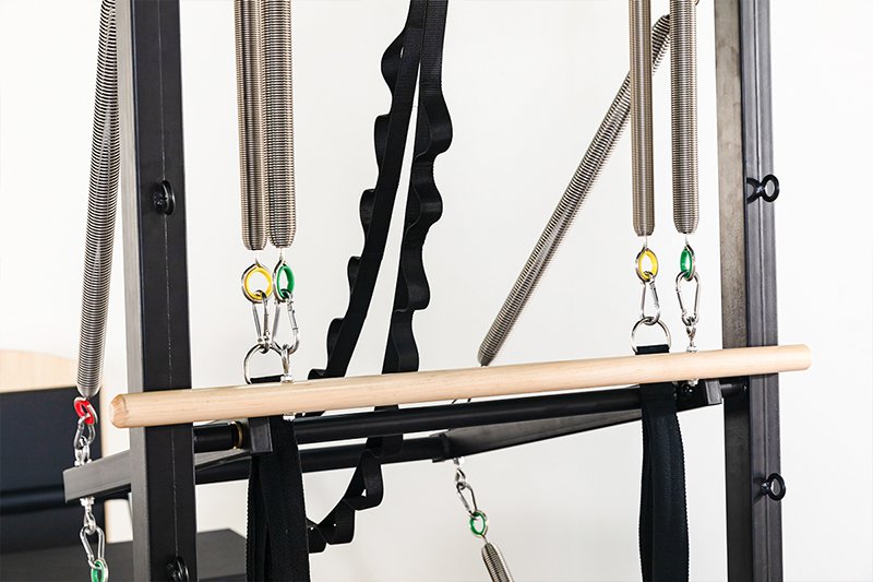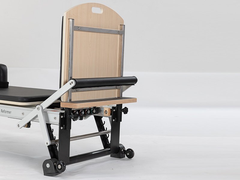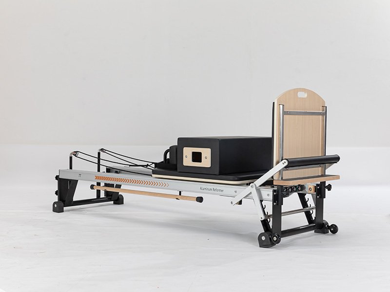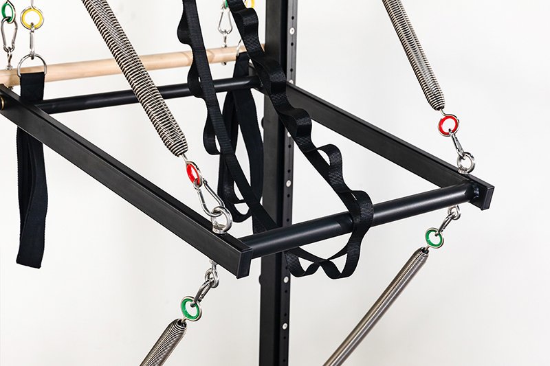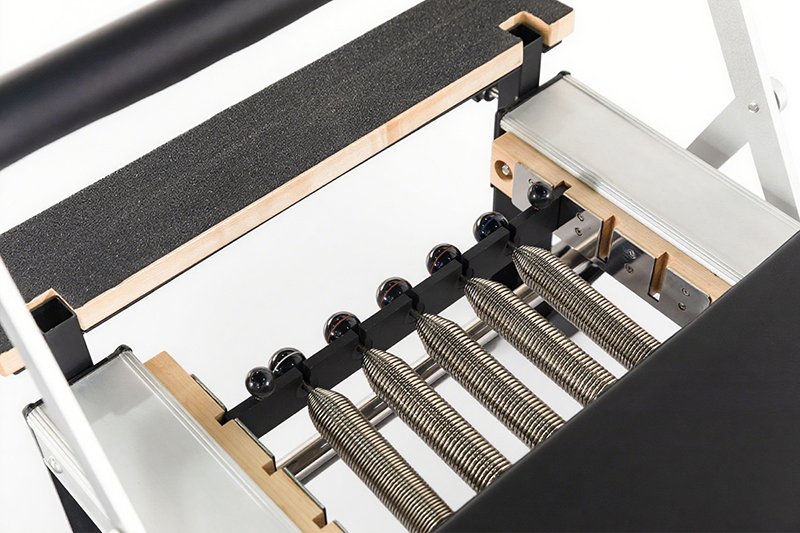 Compact design combines reformer and trapeze functions for efficient workouts.